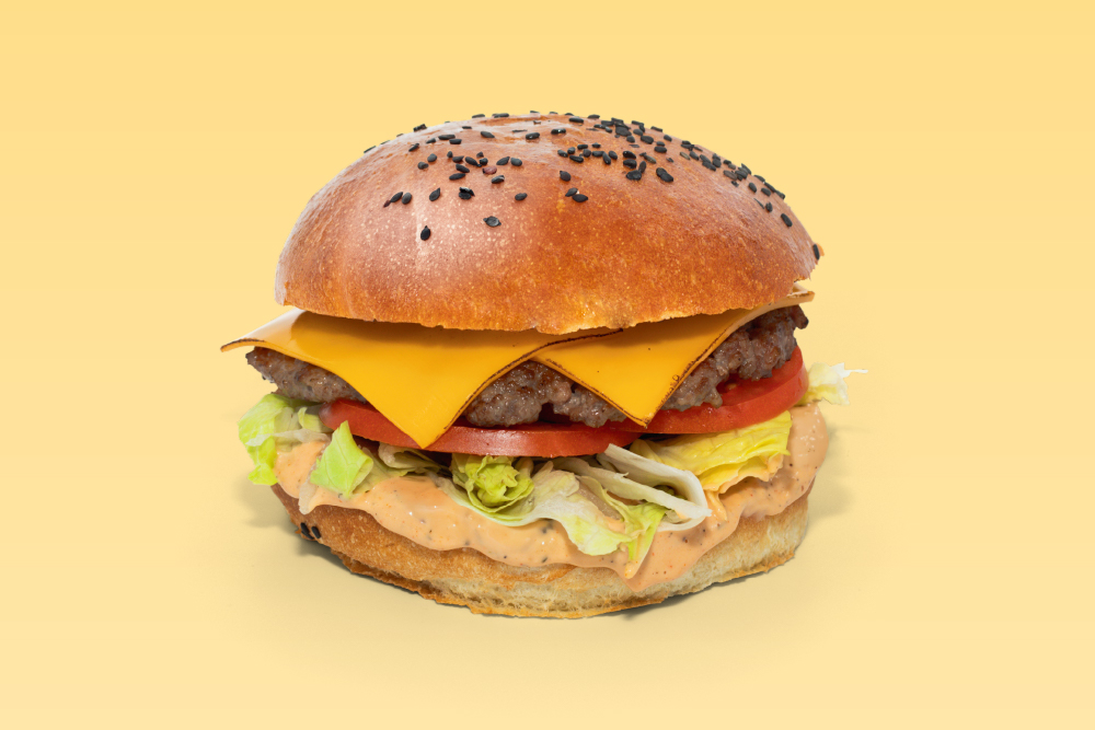 Vse sestavine za 4 Klasik burgerje – 4 burger bombete, 4 x 150 g burger mesa, 170 g Picadilly omake, 140 g ribanega cheddar sira, 200 g paradižnika Lušt in 125 g rezana solate ledenke.