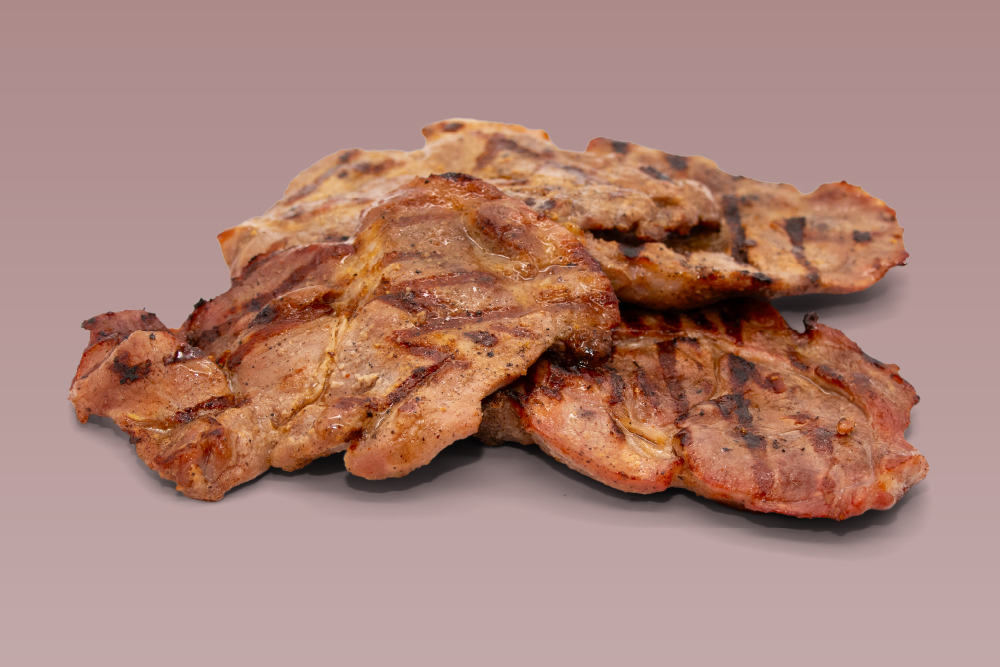 V začimbah mariniran in sočen svinjski vrat pripravljen za peko. Neto količina 1000 g.